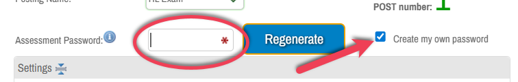 - Create an Assessment Password. It is recommended to select Create my own password and enter your desired password in the text box provided.